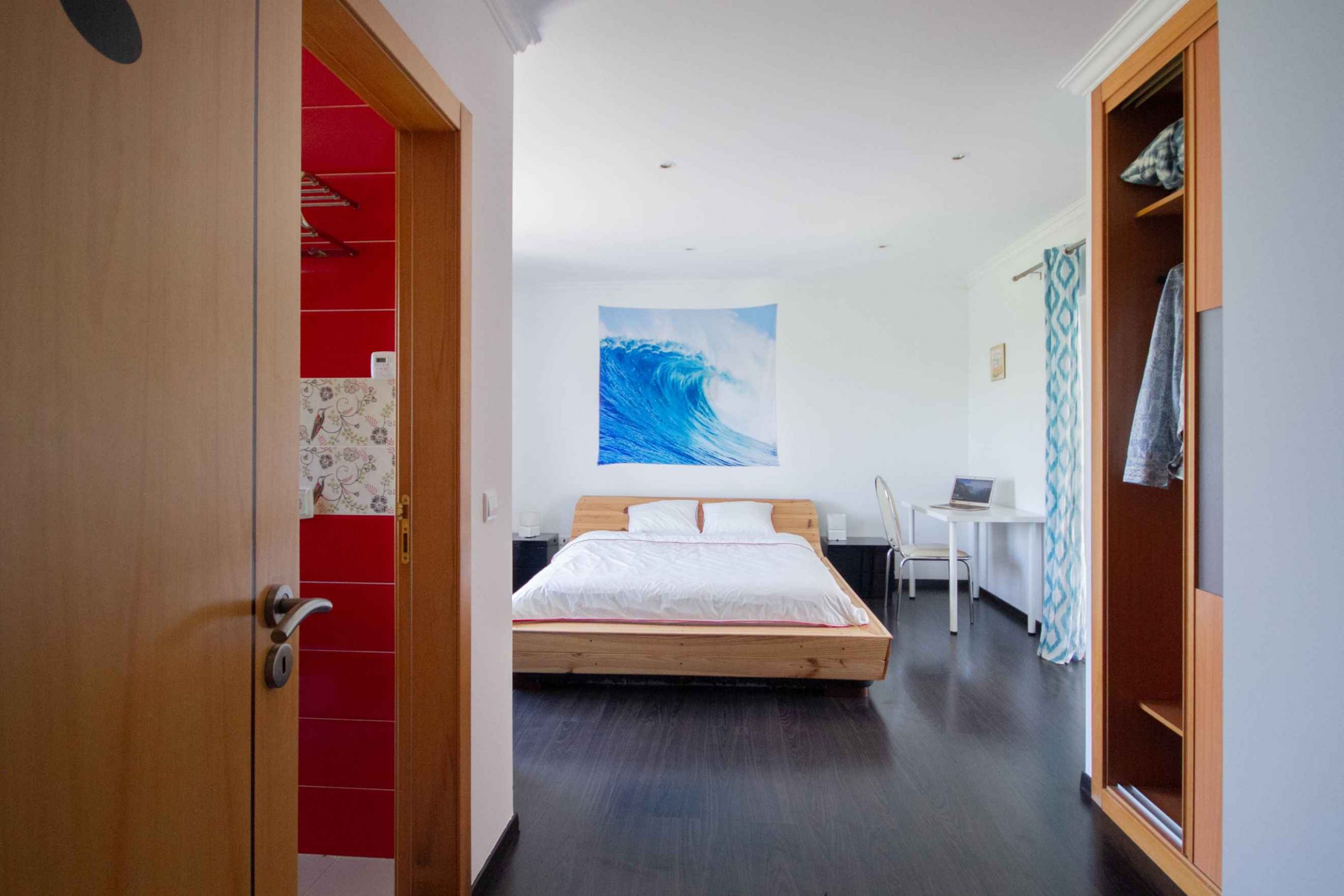 Fresh Double room perfect for couples or solo travelers. It has direct access to a semi private terrace overlooking the pool. Double bed, 2x shared bathrooms (serving 3 rooms), desk, Wifi…